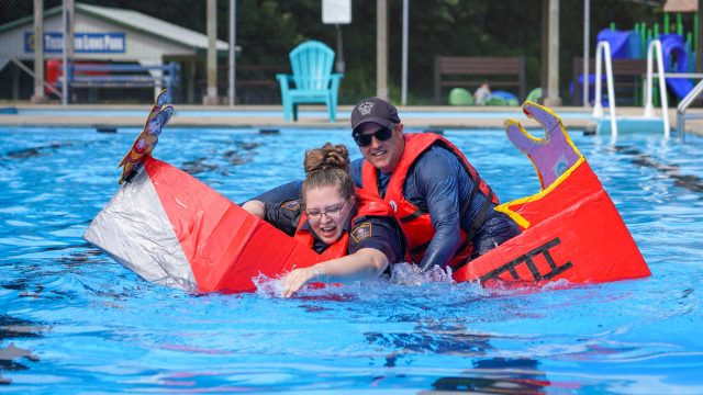 TEESWATER - The South Bruce Fire Rescue and the Teeswater Culross Swimming Pool Lifeguards teamed up for the very first (and hopefully annual, organizers say) Cardboard Boat Race on July 20 at the Teeswater pool.
