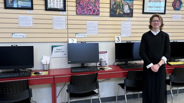 WDCS student artist Leopald Baker presents art display with the Bruce County Library in Wiarton