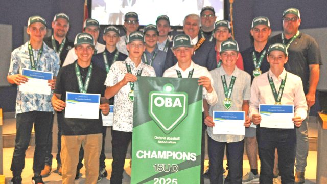 The Brockton Royals 15U D team accepted congratulations from Mayor Chris Peabody and council at the Sept. 9 council meeting.