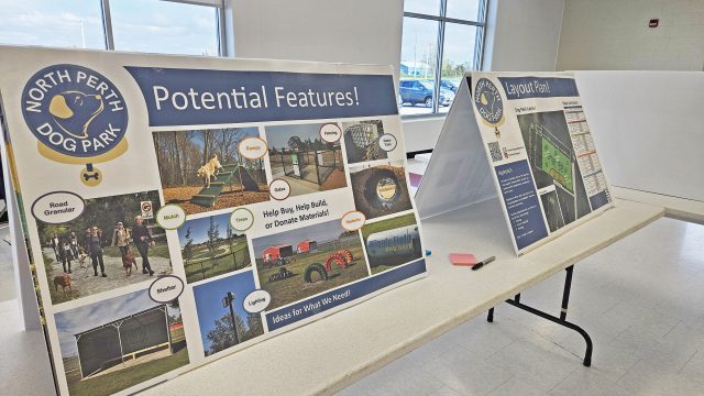 The North Perth Dog Park working group hosted an open house at Steve Kerr Memorial Complex on May 14, providing education on their design and plans for the town’s first official dog park.