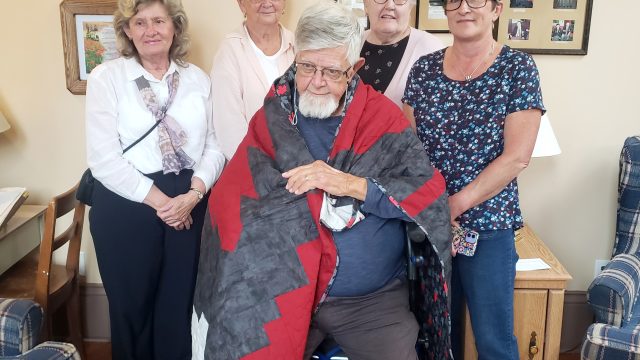 PAISLEY - On Sep 21, in a private family gathering, the Paisley Royal Canadian Legion honoured retired naval veteran Russell London with a Quilt of Valour, presented by Liz Seamans. She also presented London with a quilted place mat.