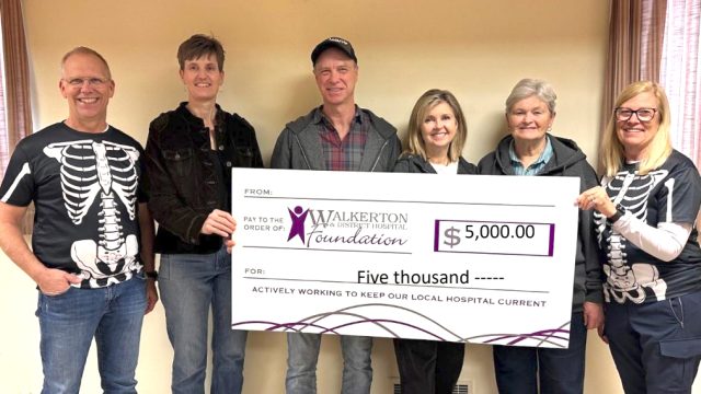 Scott and Kristen Bowman of His Style presented Walkerton District Hospital Foundation’s X-ray Fundraising Committee members with a $5,000 donation in support of the X-ray Suite Replacement Campaign’s ‘Buy-A-Bone’ initiative.