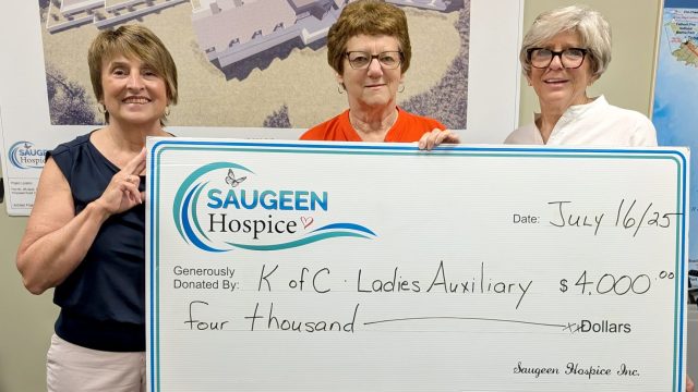 The Walkerton Knights of Columbus Ladies Auxiliary donated the proceeds, $4,000, from the Annual Strawberry Supper to Saugeen Hospice.