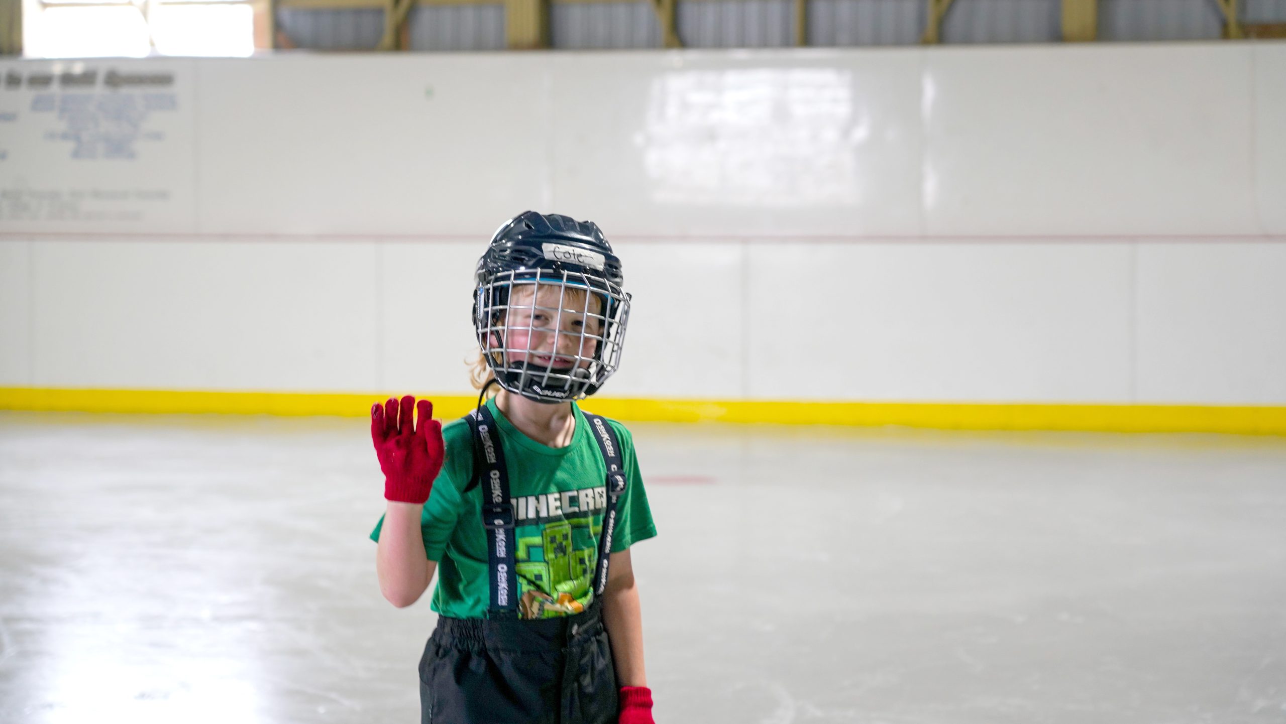 BELGRAVE – Brothers Cole (8) and Maverick (5) Shaw and five-year-old Claire Kuepfer (Top photo) showing off their skating skills and hamming it up for the camera during the Belgrave Community Centre’s free skating event on Saturday, Feb. 1. The Belgrave Community Centre offers several free skating events throughout the skating season that are sponsored by various local businesses. Shawn Cottrill Tax Services sponsored this one. Above: Five-year-old Maverick Shaw peeks over the boards during Saturday’s free skate event at the Belgrave Community Centre ice rink.