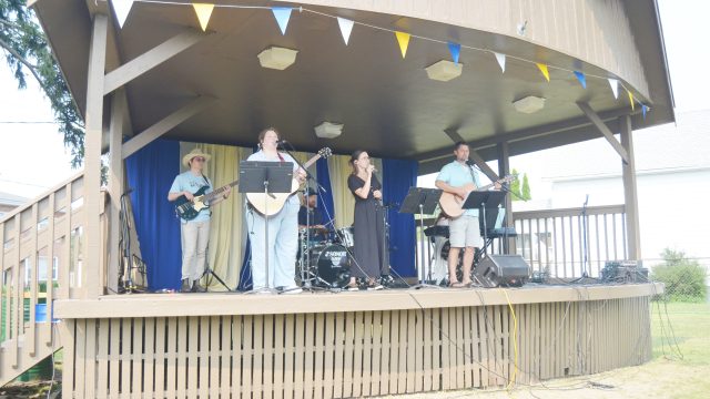 Local churches came together to host hundreds of parishioners and guests on Sunday morning at a special outdoor church service at Memorial Park in Listowel as part of the Listowel 50th celebration. Above, the ceremony was preceded by many trying to find a shady spot to sit and music was a big part o