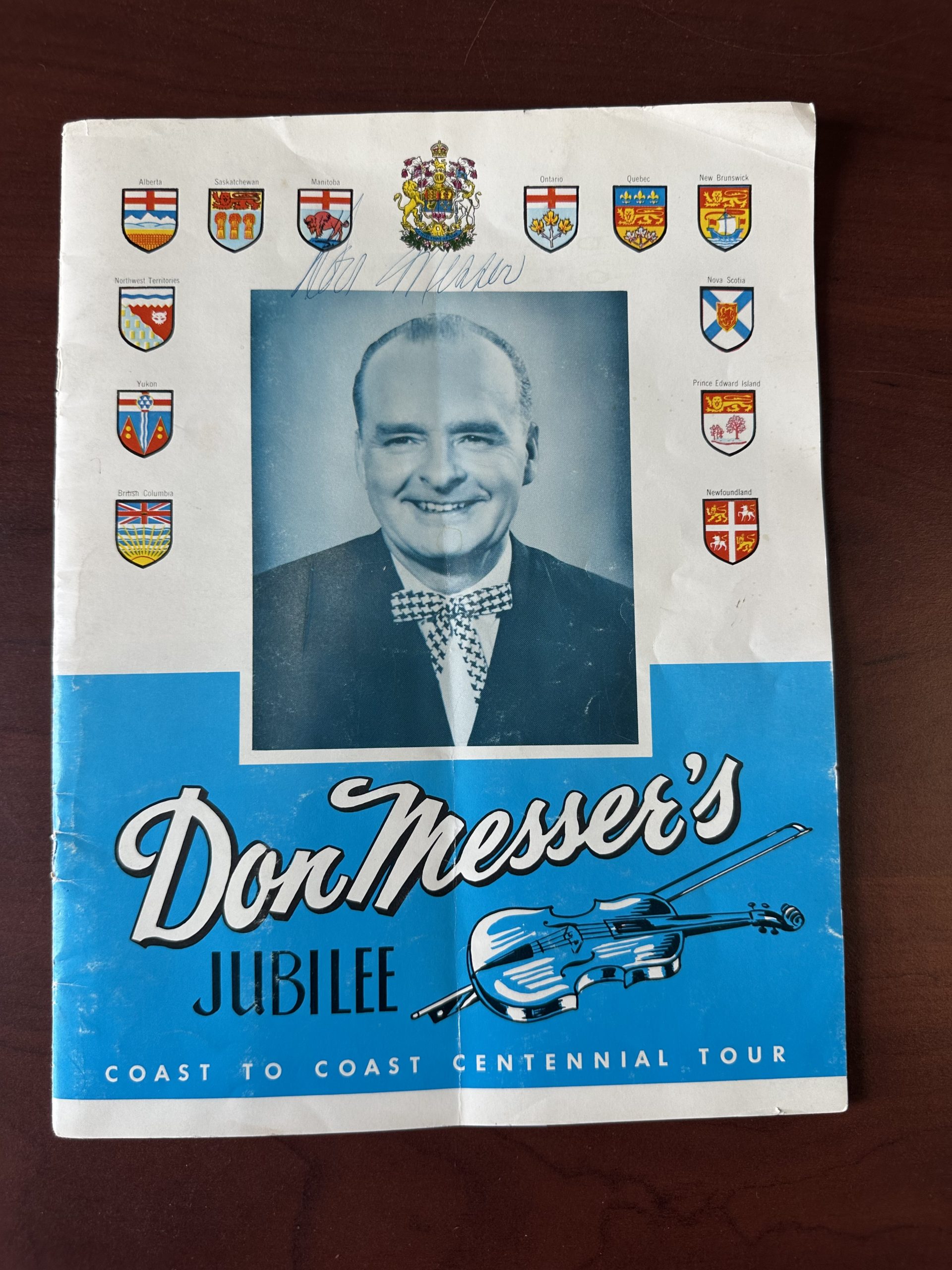 A commemorative booklet was produced in 1967 to mark the occasion of the Don Messer’s Jubilee Coast to Coast Centennial Tour. (Pat Raftis photo, of book cover)