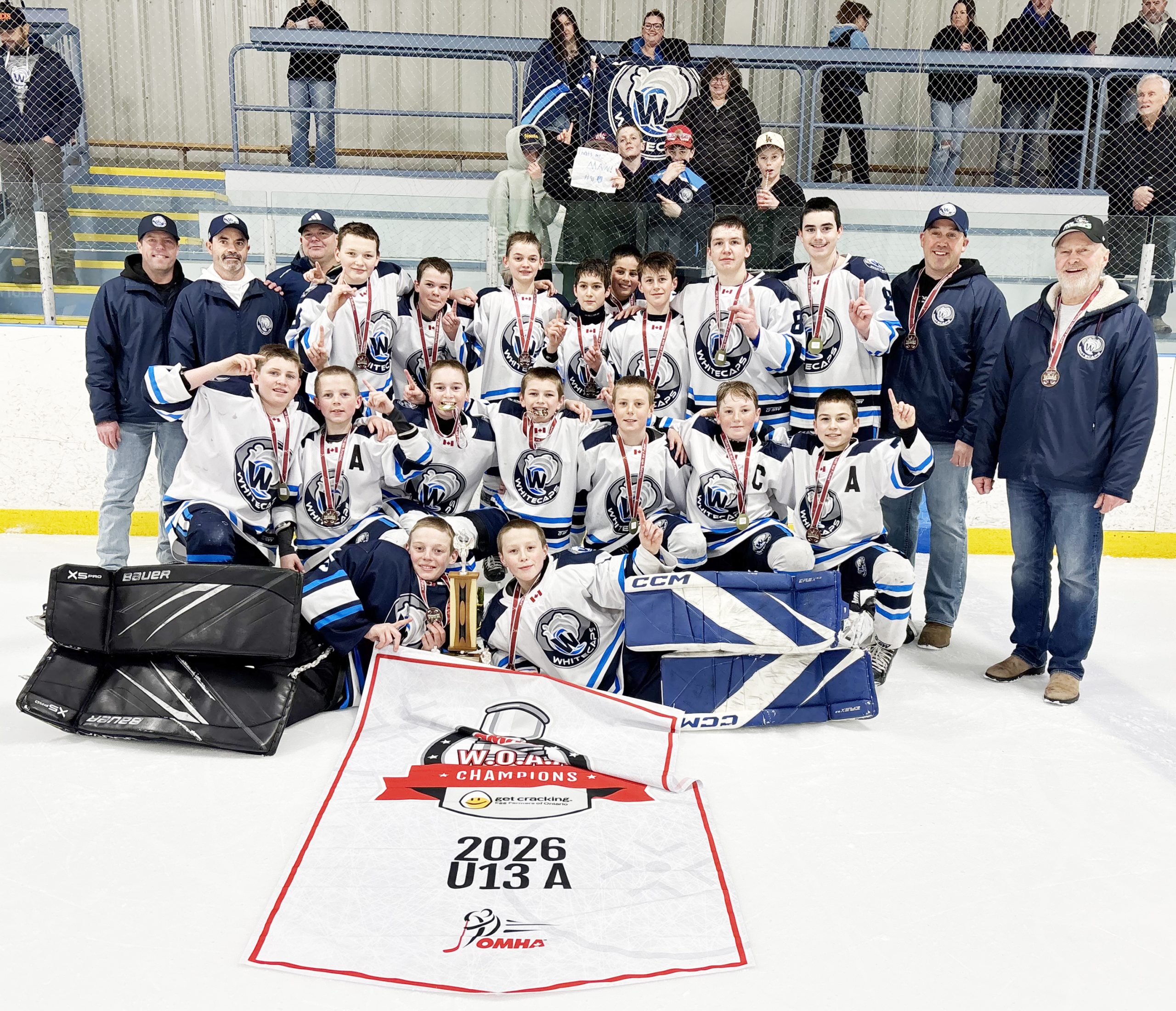 LUCKNOW – The West Coast Whitecaps U13A squad claimed the Western Ontario Athletic Association (WOAA) banner over the weekend, downing the Southeast Surge in a home game at the Lucknow arena. The Whitecaps went down early in the series, losing 3-2 to the Surge in Lucknow on March 22, but bounced back with a 4-2…