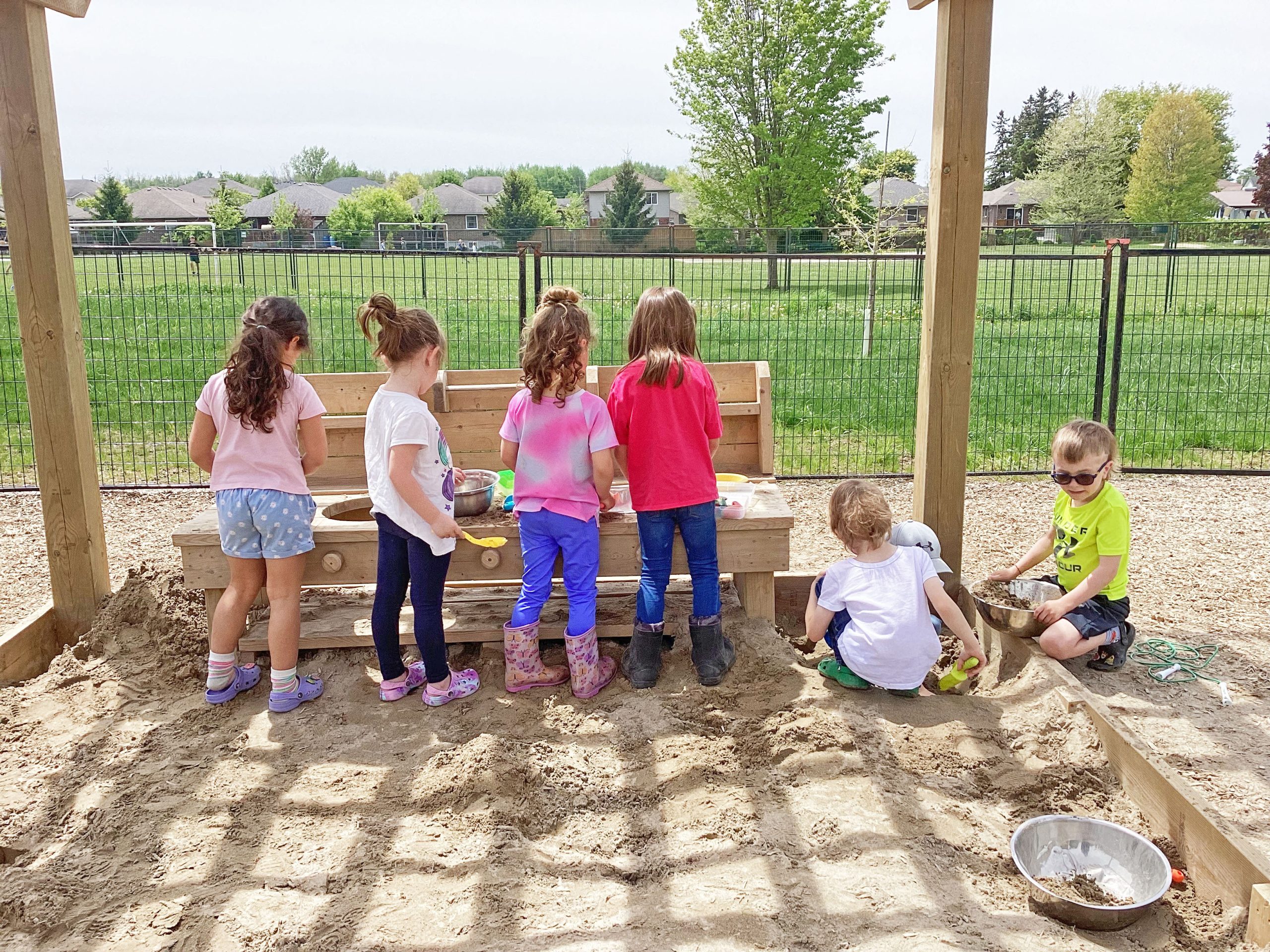 LDSS and Eastdale students collaborate on interactive play for outdoor mud kitchen
