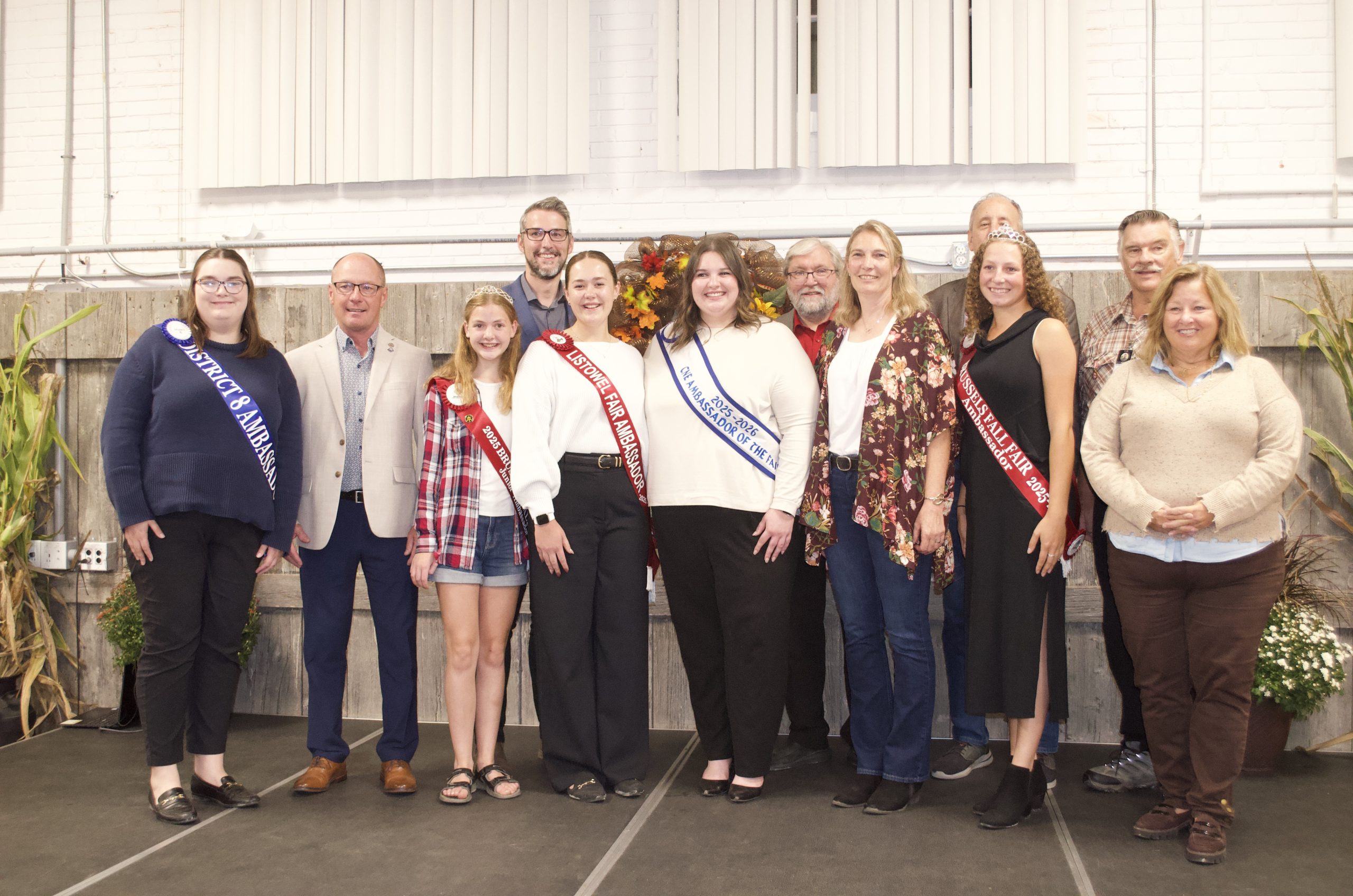 From left: District 8 Ambassador Ainsley LeBlanc, Perth County Warden Doug Kellum, 2025-26 Brussels Junior Ambassador Alison Van Nes, MPP Perth-Wellington Matthew Rae (back), 2025-26 Listowel Fair Ambassador Jillian Ohm, 2025-26 CNE Ambassador of the Fairs Lexi Johnston, North Perth Mayor Todd Kasenberg (back), Listowel Agricultural Society President Carolyn van der Heiden, CNE President and Chair Randy Bauslaugh (back), 2025-26 Brussels Fall Fair Ambassador Alycia Coultes, CNE Board Director Larry Davis (back), Minister of Rural Affairs and Huron-Bruce MPP Lisa Thompson. (Rachel Hammermueller photo)