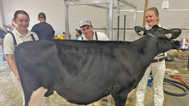 STRATFORD - With well over 200 entries for 4-H members at the recent Western Ontario Championship Show in Stratford, these three hard working 4-H members were taking their fitting job one step at a time.