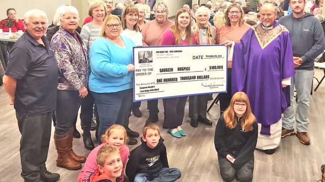 The Walkerton Sacred Heart Parish made a $100,000 contribution to the Saugeen Hospice on Dec. 7.