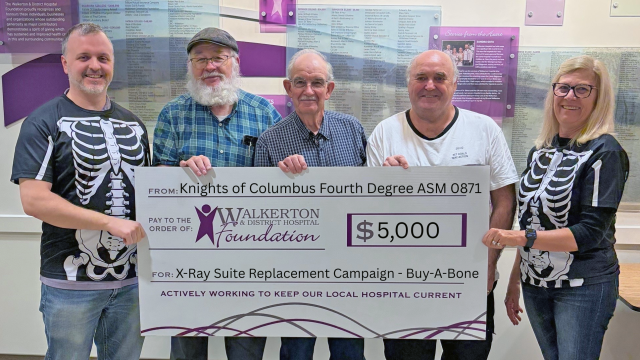WALKERTON - The Knights of Columbus Fourth Degree ASM 0871 donated $5,000 to the Walkerton and District Hospital Foundation’s X-Ray Suite Replacement Campaign through the Buy-a-Bone initiative.