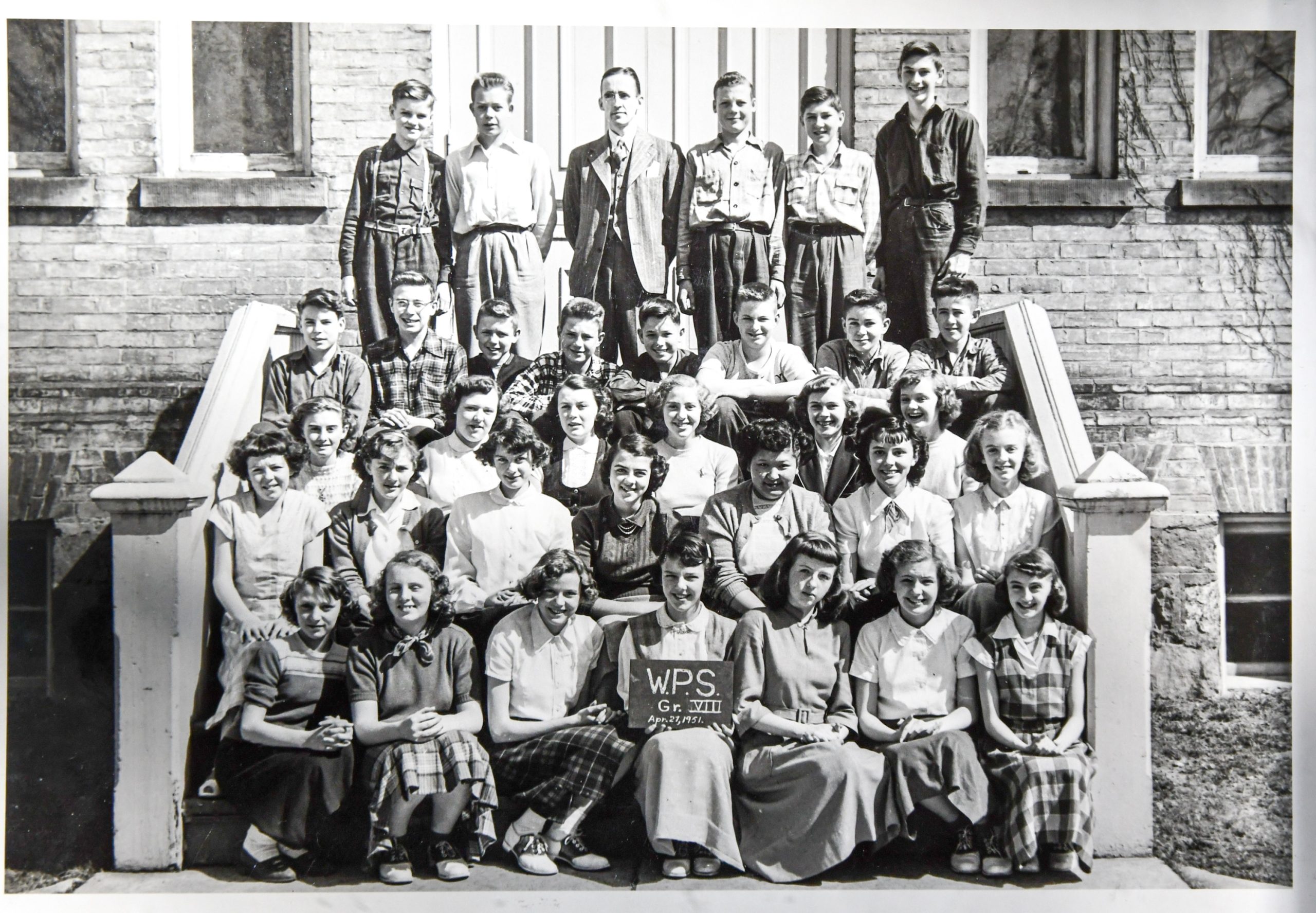 Wingham Public School Grade 8 class photo. Back row, from left, Keith Lancaster, Jim Dremman, Mr. Stewart Beattie, Bill Connell, John Congram. Second row from back, Don Breckenridge, Jerry Fry, Bill Foster, Gord Wain, Ross Hayden, Bruce Lott, Wendell Alton, Doug Murray. Third row from back, Patsy Dawson, Lois Walker, Doreen Machan, Patsy Carmichael, Gael Burdon, Louise Campbell. Second row from front, Joan Armitage, Barbara Edwards, Justine Lee, Francis Merkley, Marie James, Frances Newman, Velma Redman. Front row, Mary Stapelton, Sally Slosser, Sheila Laidlaw, Joan Loughlean, Mary Hotchkiss, Shirley Chettleburg. (Contributed photo)