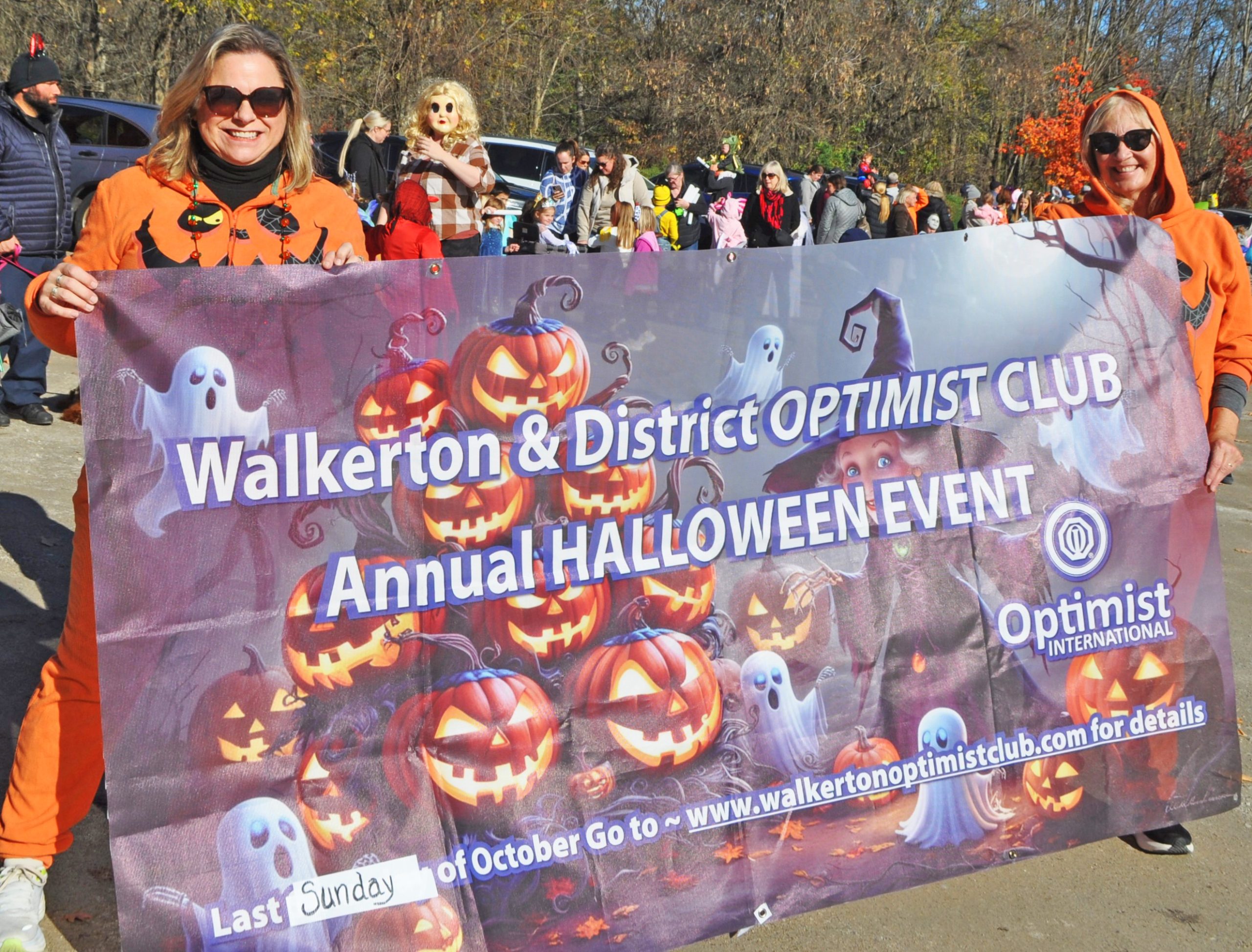 MONSTER MARCH - The Walkerton Optimist Club’s second annual Monster March on Sunday, Oct. 26 drew hundreds of little – and not so little – monsters, ghouls, and a minion or two. They gathered in Riverbend Park and walked to Market Garden Park for treats, in complete safety, with the road closed to traffic. Left: Organizers from the Walkerton and District Optimist Club. Right: A couple of of the monsters involved. (Pauline Kerr photos)