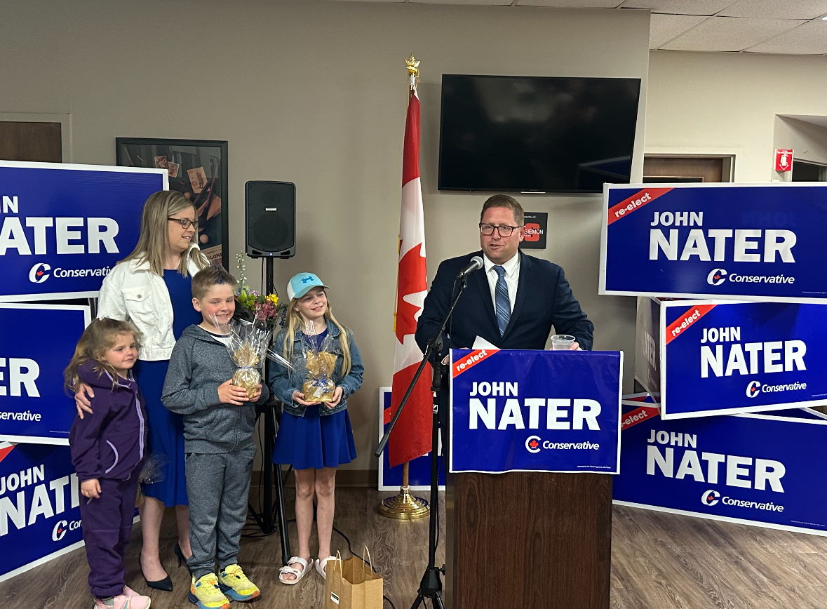 Nater then thanked his fellow candidates David Mackey (Liberal), Kevin Kruchkywich (NDP), and Wayne Baker (PPC) for putting their names and ideas forward.