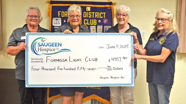 The Formosa Lions Club donate the earnings from their Mother’s Day Breakfast to Saugeen Hospice.
