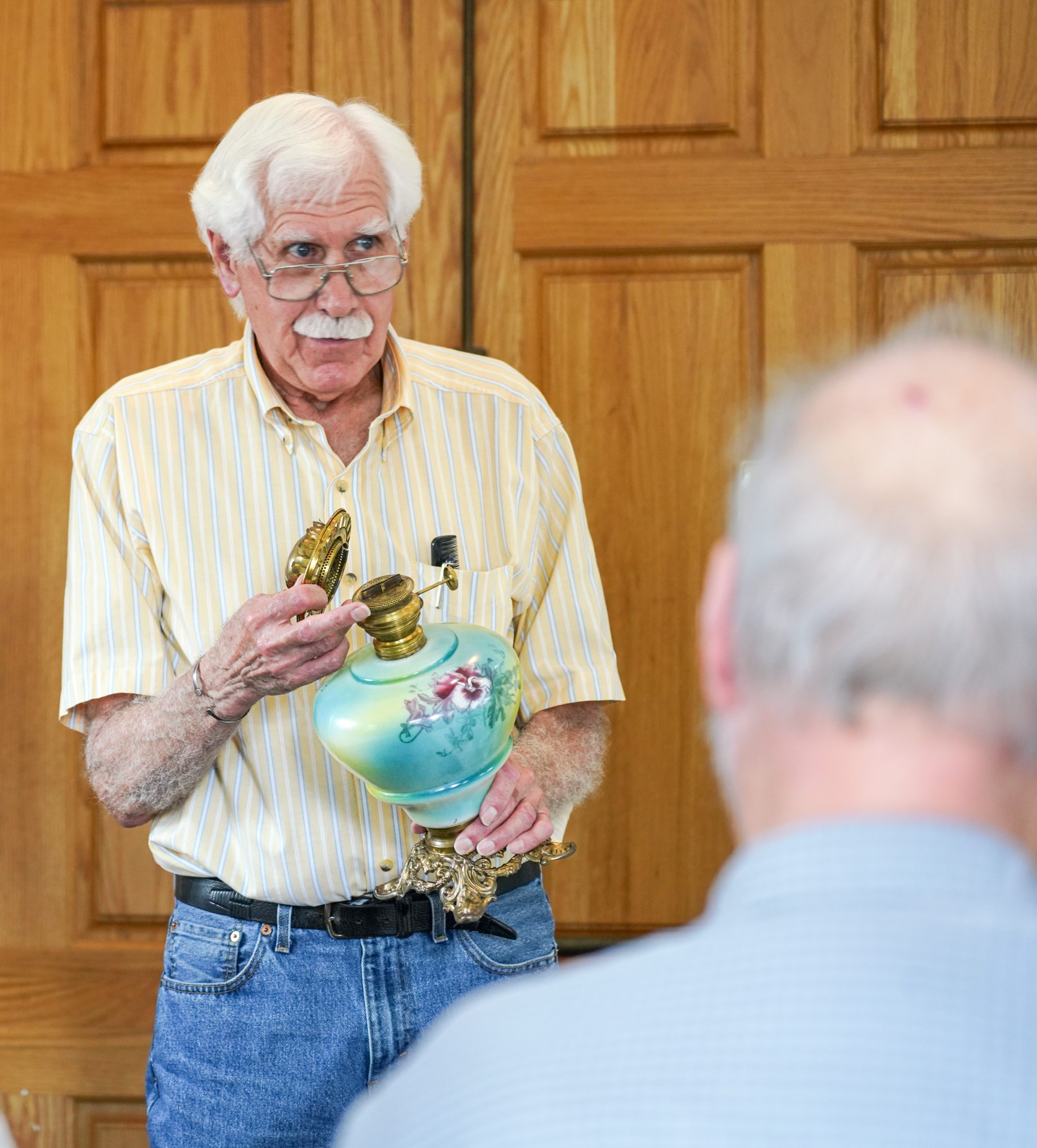 Oil lamp collector illuminates local history with rare lighting artifacts at historical society event