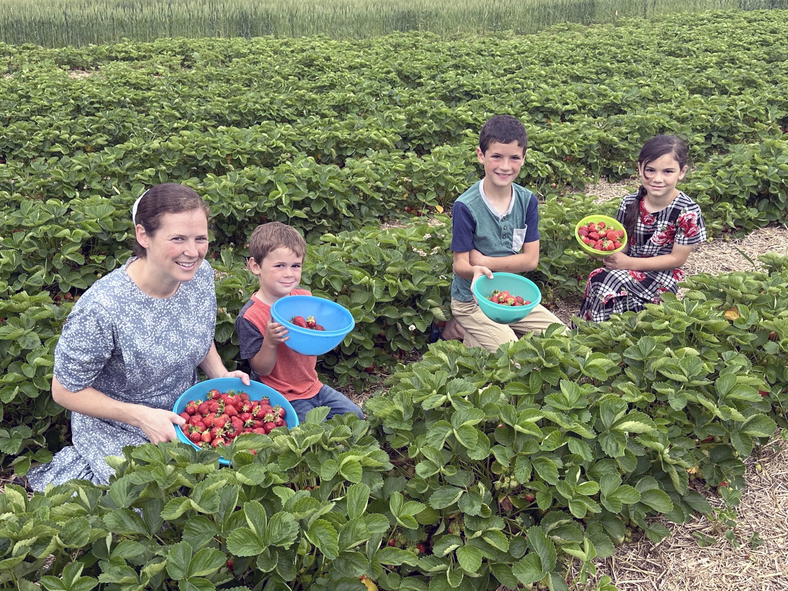 Among those taking advantage of the chance to pick some fresh strawberries were, from left: Steffanie, Evan, Cole and Alayna Diefenbacher. (Patrick Raftis photo)