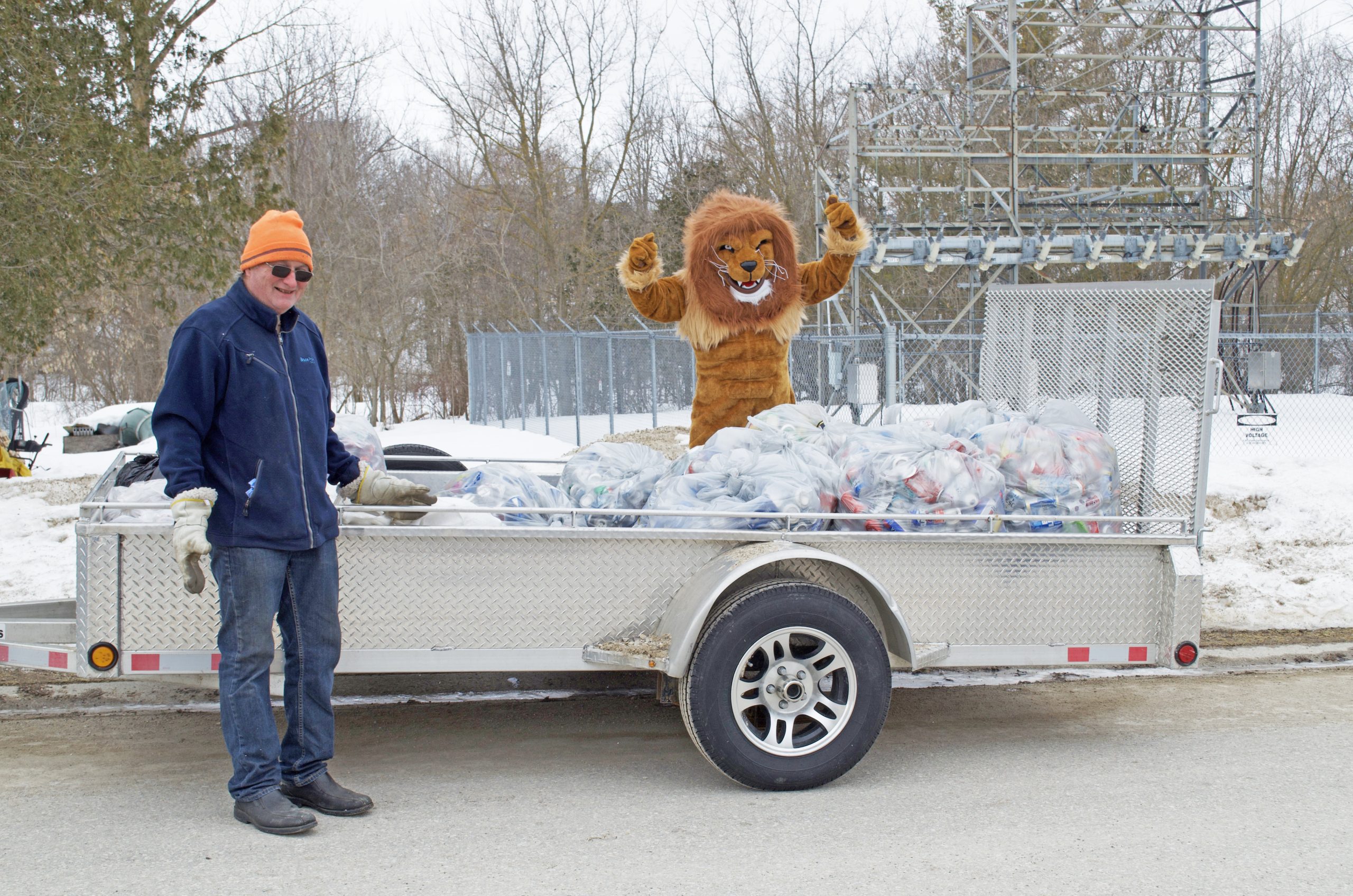 The Lions Club of Wingham were out in force on Feb. 28, braving the cold to collect bags upon bags of bottles and cans as a fundraiser. It was all smiles from volunteering Lions members as they filled an entire trailer with drop-offs already half-way through their fundraiser. From left: Lions Murray Wales, Larry, Donna…