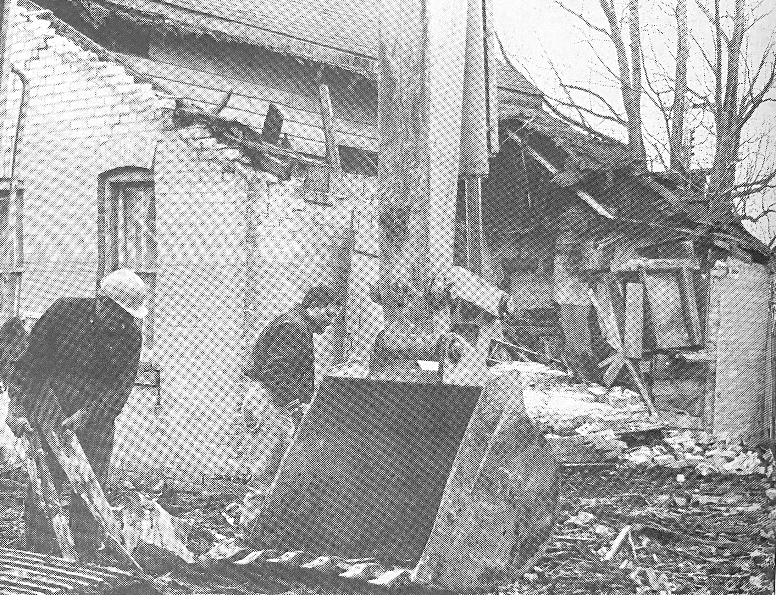 From April 28, 1993: The old Van Horne house on Yonge Street, south, Walkerton, was demolished last week. The vacant lot will increase the size of the parking lot at Harts Food Market in Walkerton. Owner Doug Hart, centre, checks out the size of the backhoe. (Hereld-Times file photo)