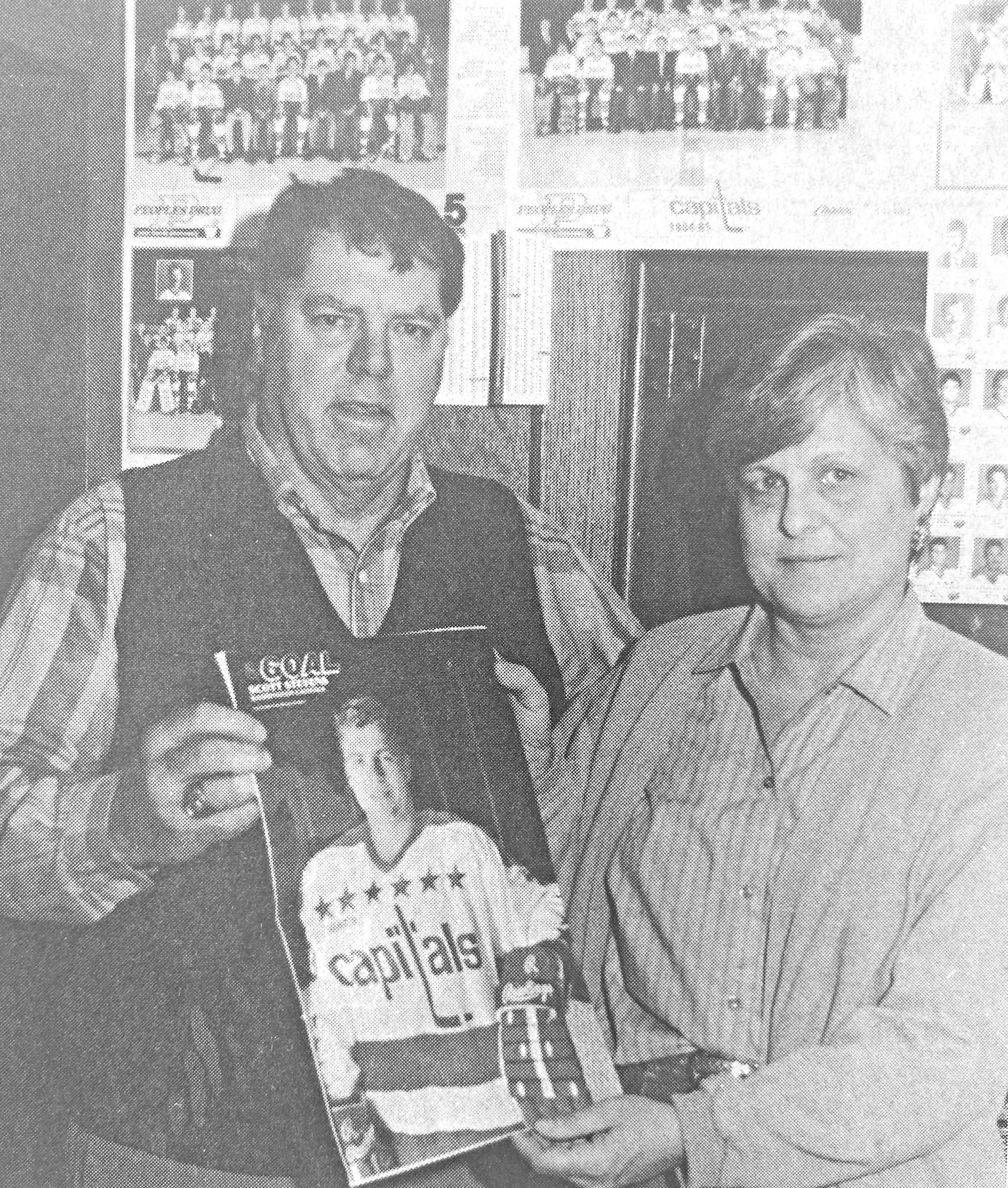 From April 5, 1989: Mary and Larry Stevens, owners of Anderson Paper Products in Walkerton, are gearing up for the NHL playoffs, not only because they are avid hockey fans, but because they have two sons who play in the NHL. Here they hold a picture of their son Scott, one of the top defensemen and seven-year veteran of the Washington Capitals. He appeared in this month’s Goal magazine. (Herald-Times file photo)