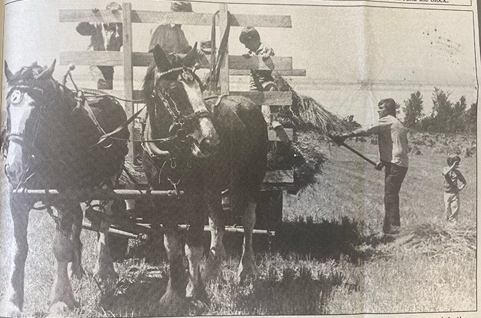 From August 23,1993: Loading up the wagons was a family affair at the farm of Marvin and Angela Freiburger as they took in the straw the old fashioned way. (Herald-Times file photo)