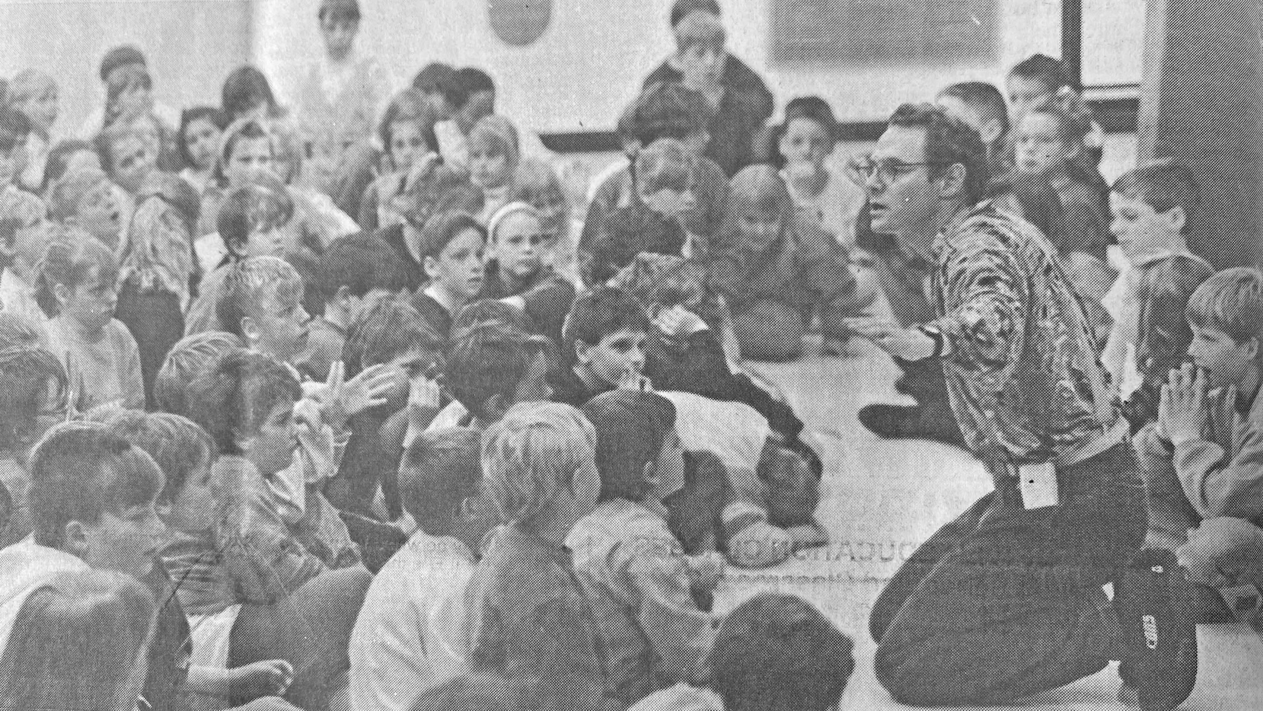From Feb. 24, 1993: Jay Miller of Toronto had his audience of Walkerton elementary students in a spell with his super storytelling last week. Walkerton Public School invited other schools to hear Miller. (Walkerton Herald-Times file photo)