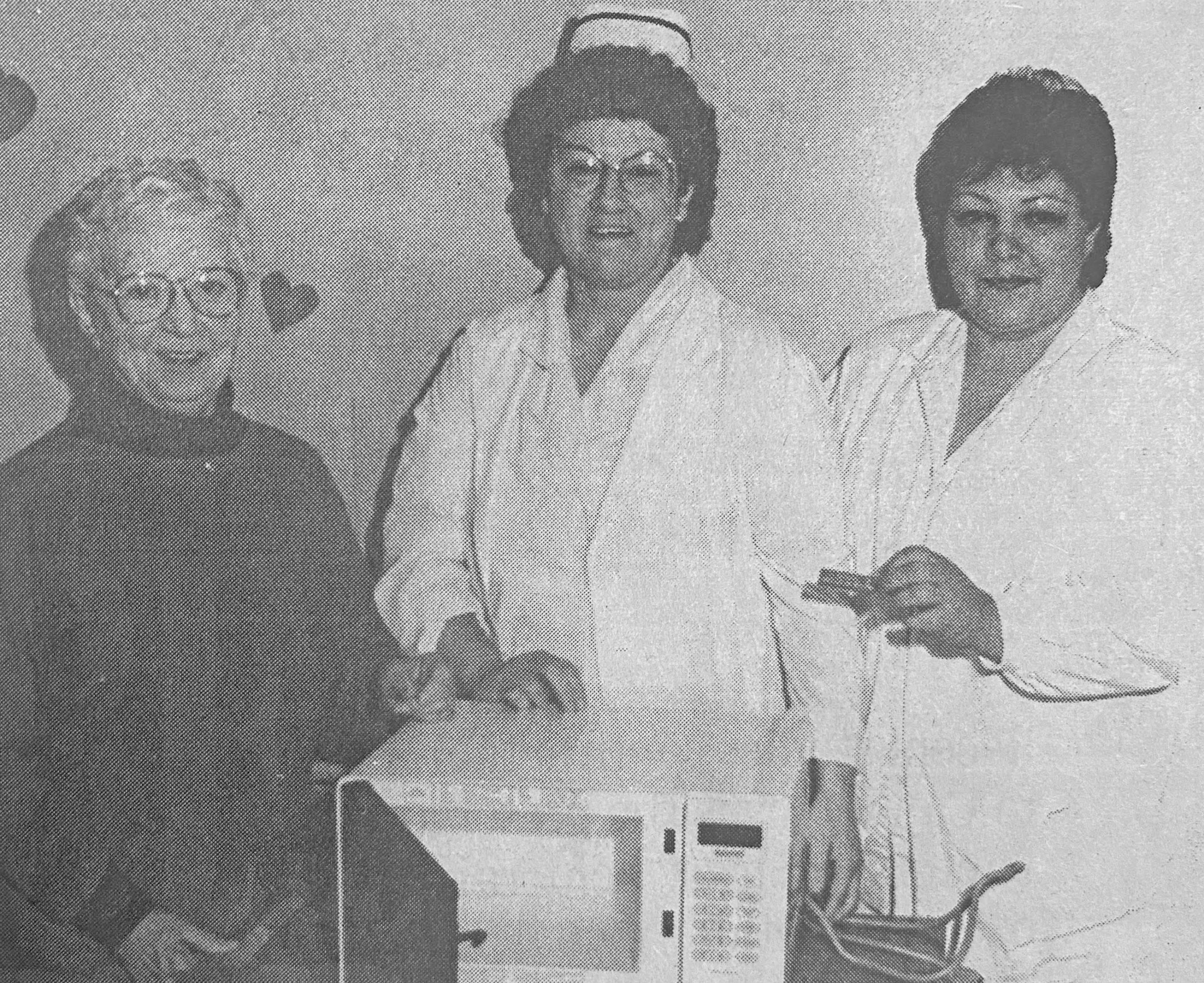 From Feb. 14, 1990: A portable microwave oven was recently donated to the County of Bruce General Hospital’s continuing care unit. The donation was made by Fran Mason (left), in memory of her hus-band, William, a former patient on the ward. With her are Mairi Kar-cher (centre), coordinator on the unit and Barbara Brindley, RNA on the unit. (Herald-Times file photo)
