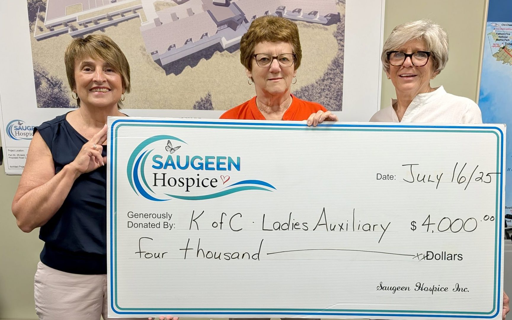 Walkerton Knights of Columbus Ladies Auxiliary donates $4,000 to Saugeen Hospice