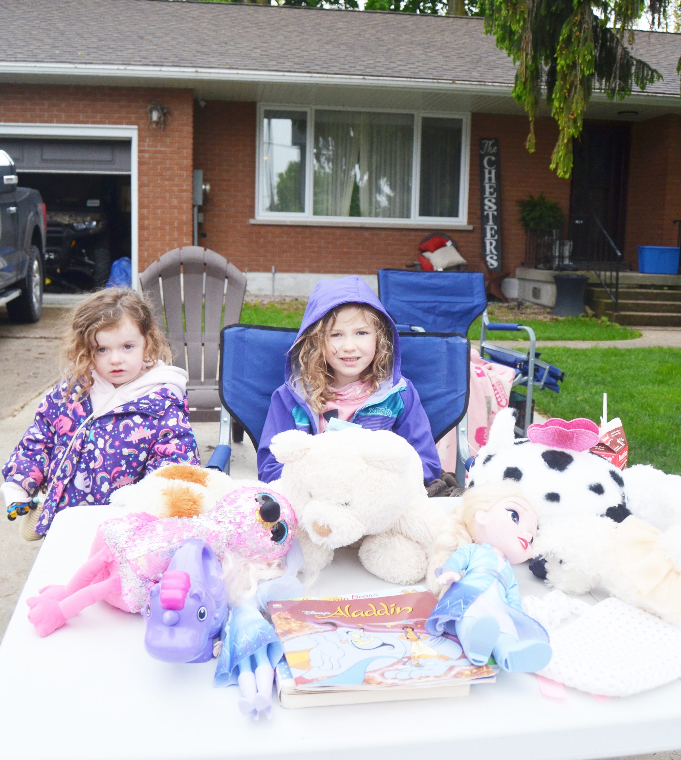 The Wingham Town-wide Yard Sale was held on the weekend and, despite some wet weather, there were plenty of prizes to be found among the various sales. Maren, left, and Ava Chester sell some stuffed animals during the yard sale.