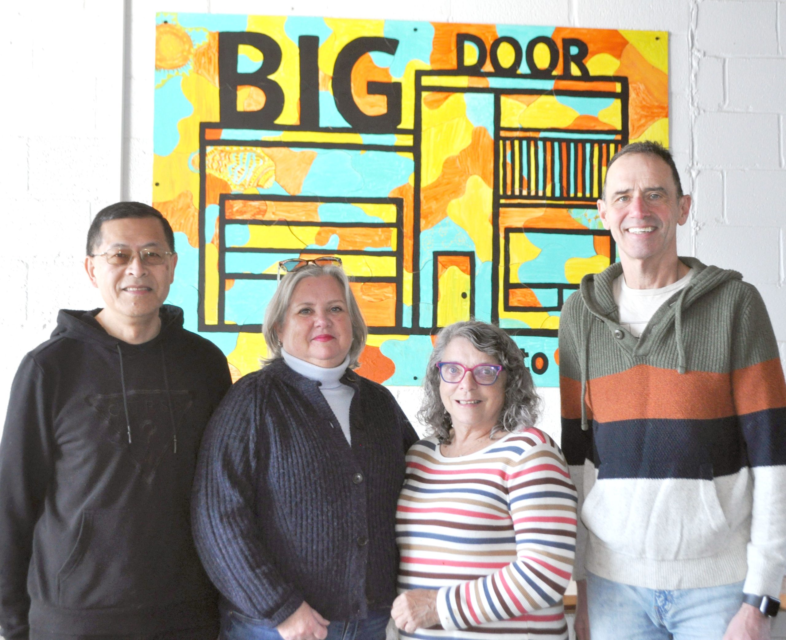 WARM AND WELCOMING - BigDoor, already known as a place where people in need can enjoy a warm meal on Tuesdays, with even warmer conversation, will host a new ad hoc warming centre. It will open evenings, only when there’s extreme cold weather. Notification that it’s open will be via social media and emergency services. There’s already discussion underway about a volunteer-run cooling centre for summer. From left: Dan and Sandra Wong (BigDoor and warming centre volunteers), Barb Vandenboer (Big Door) and Coun. Greg McLean (municipal representative and warming centre volunteer). (Pauline Kerr photo)