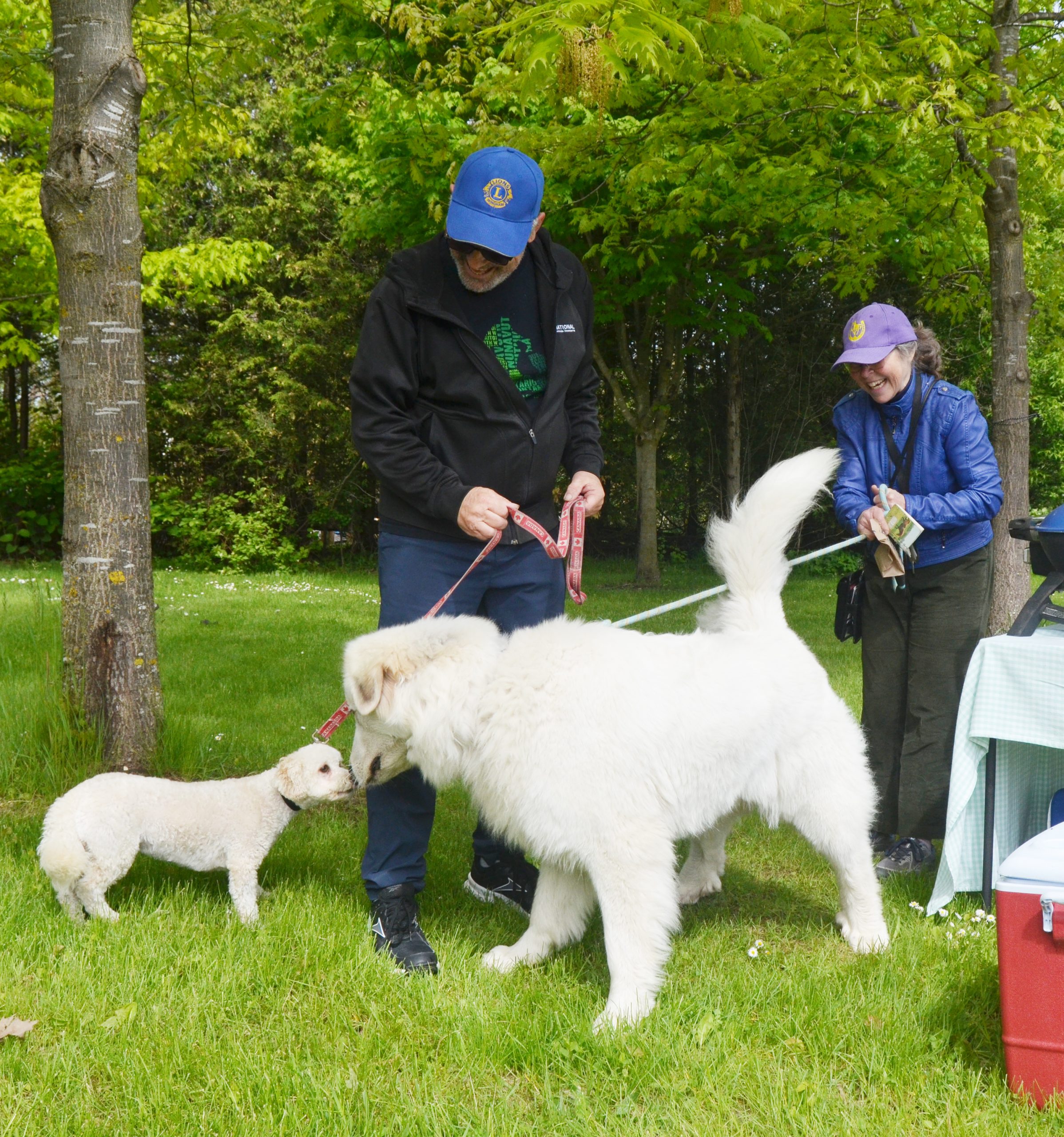 Lion Larry Jervis’ Millie meets her larger doppelganger in Vicky McKague’s Alya which stands for “All You Need is Love,” as the Great Pyrenees’ breeder named the entire litter after Beatles’ songs. (Denny Scott photo)