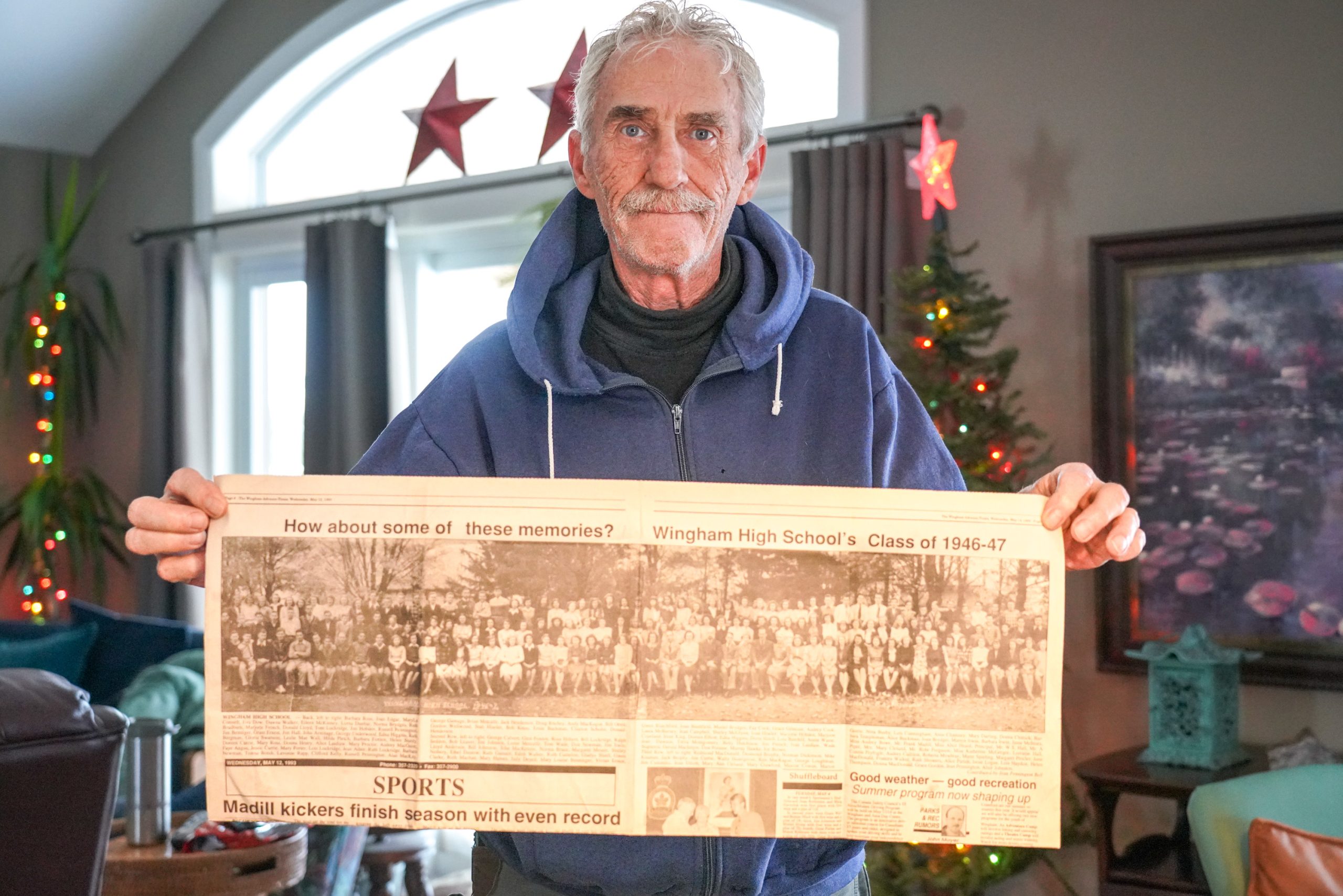 Long-time Wingham residents Gerald Marks and his wife Connie Burke were digging through some old boxes that had been stored in their basement when they came across a broadsheet newspaper copy of a 1993 Wingham Advance Times, with this Wingham High School Class of 1946-47 photo. Marks said he’s not sure why he kept this…